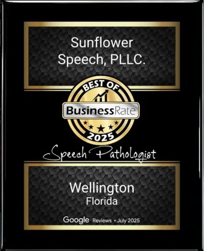 Sunflower Speech, PLLC was recognized by BusinessRate as the BEST of 2025 Wellington Award Winner in the Speech Pathologist category! This award identifies local leaders in customer satisfaction, brand reputation, and service excellence.