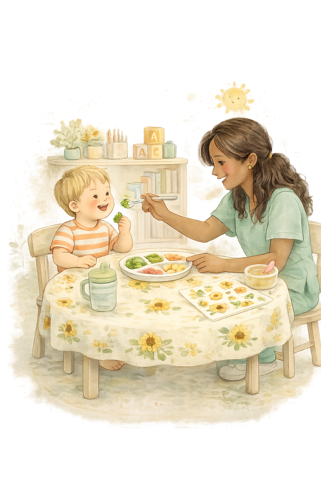 Feeding should feel safe, supported, and positive - for children and caregivers alike. We meet your child where they are and build comfort, skills, and confidence around eating. We focus on progress you can carry into real meals at home.